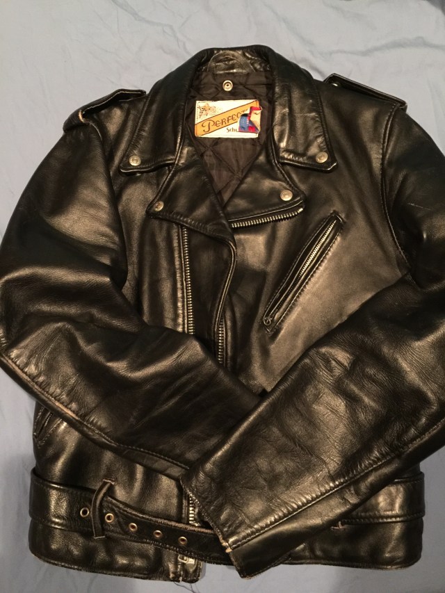 今もすごく愛用してるこのschottのライダース。知る人ぞ知るストーリーだけど、浪人生だった26年前。今は亡き祖母が「成人式に着る服を買いなさい。」とくれた2万円でアメ横で購入したもの。もちろん、このライダースで成人式に出席したっけ。