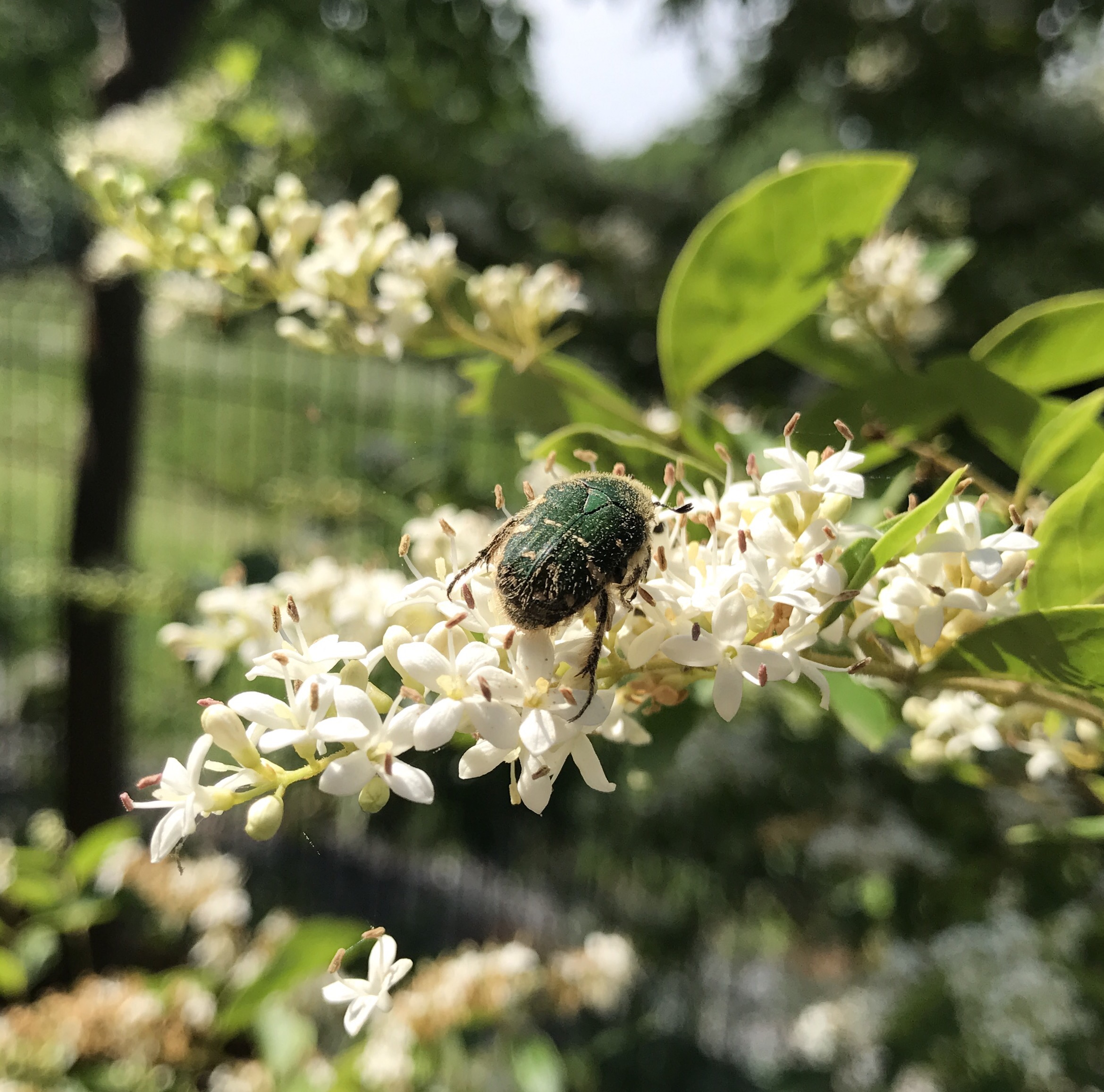 そもそもネズミモチは庭木というより公園なんかに植えてある木なのだが、昆虫の集まる花として名高いため、「ならば!」と植えた次第。
