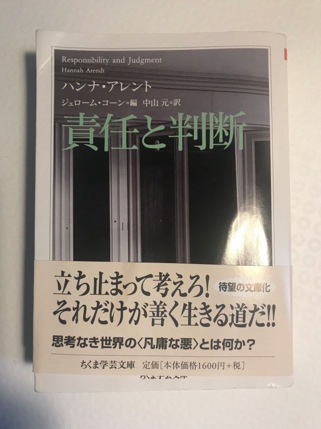 責任と判断 (ちくま学芸文庫) ハンナ・アーレント https://www.amazon.co.jp/dp/4480097457/ref=cm_sw_r_cp_apip_BFxGgefef8WTw