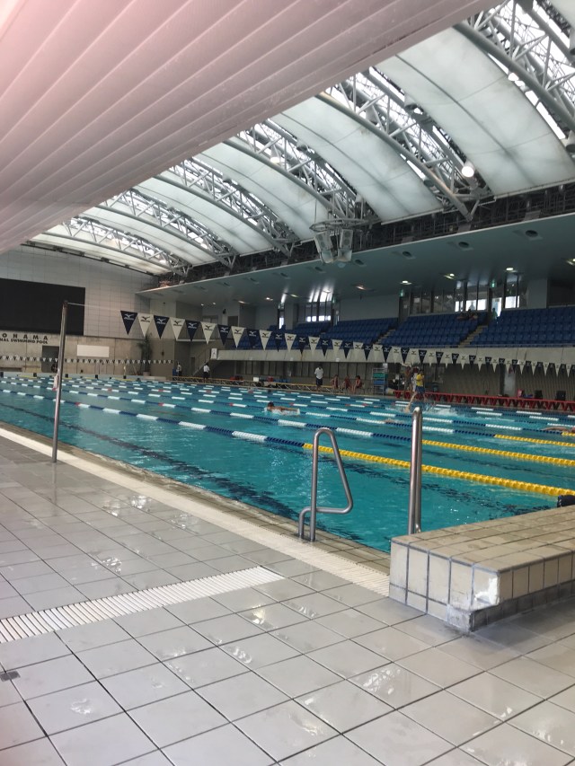 良いプールだなあ。でも暑い。室内のプールサイドでもキツイよ。