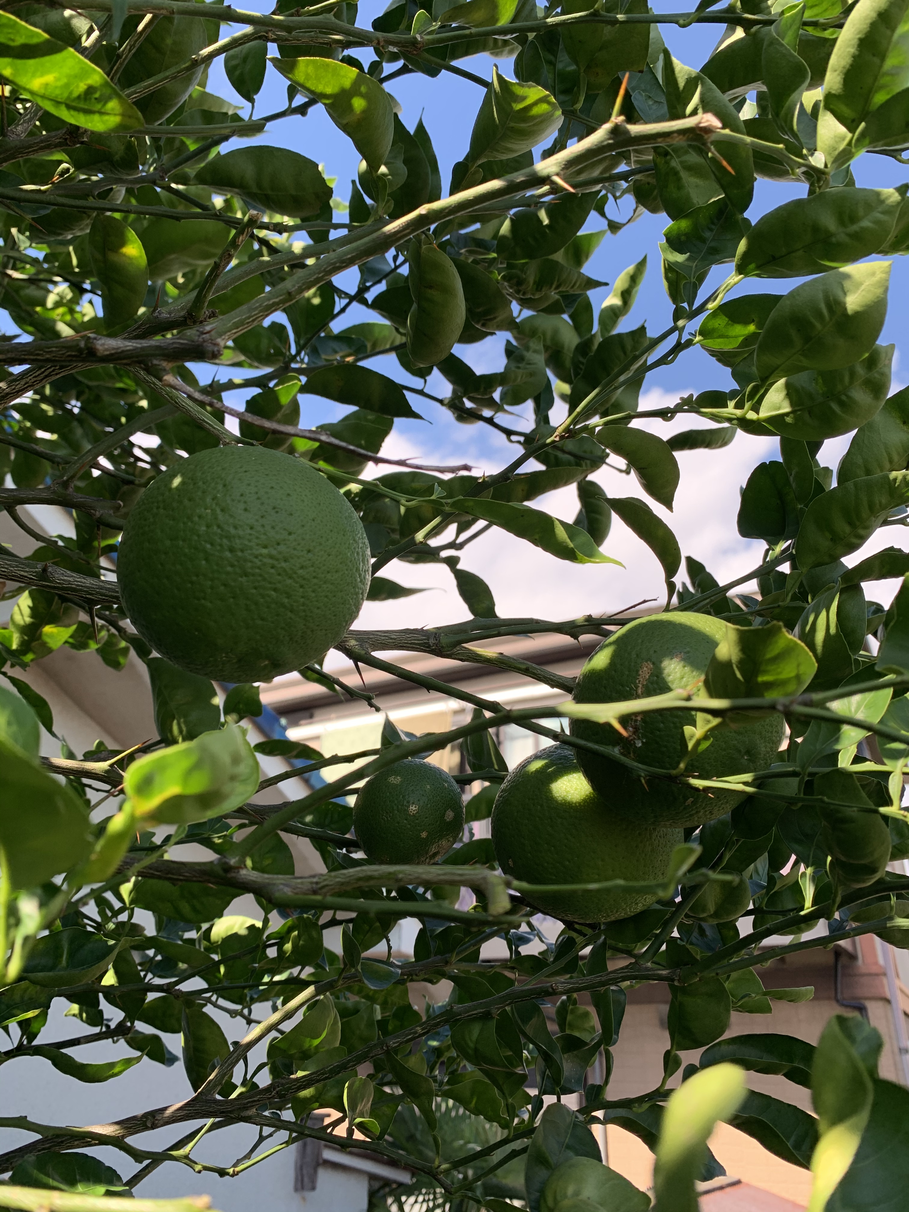 実家の母から、カボス取りに来いと連絡あり。台風が来る前にやっちゃおうと、パチンパチン収穫する。