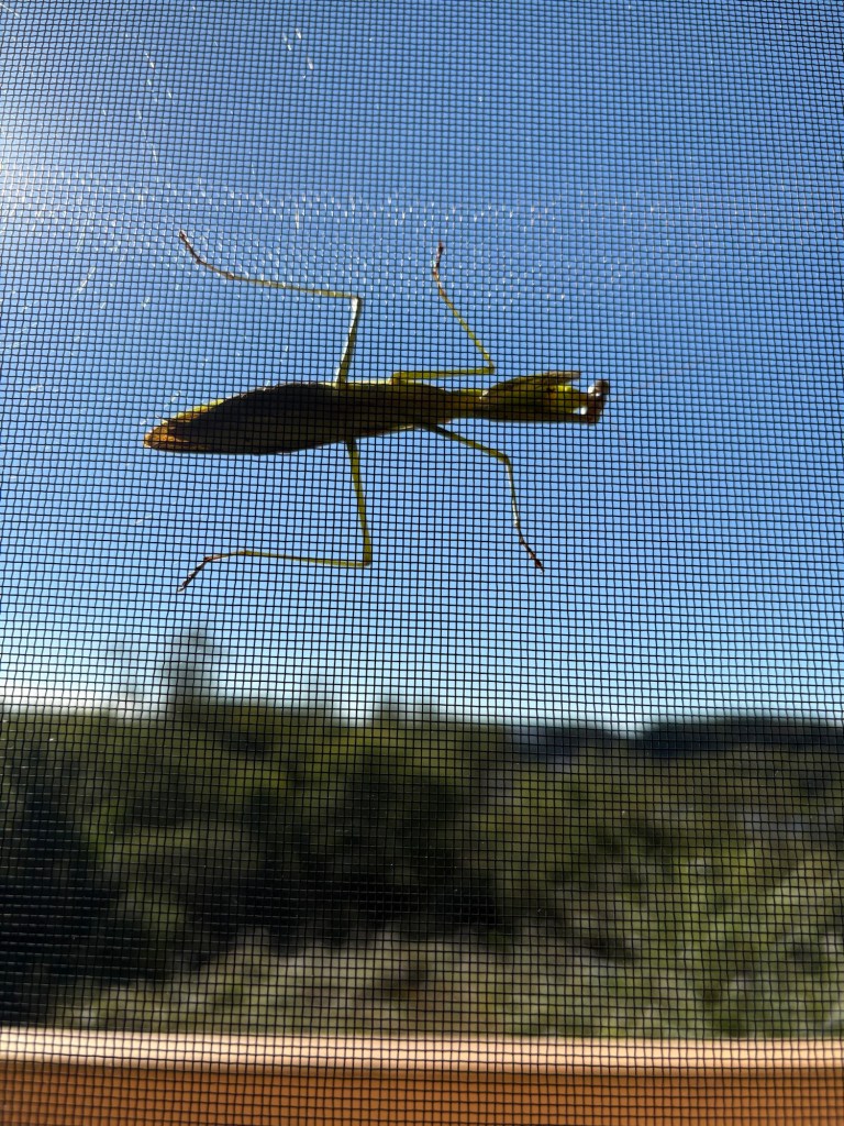 リビングの網戸につかまっていた、カマキリさん。秋の終わりを告げています。無事に良いパートナーと巡り会えますよう。