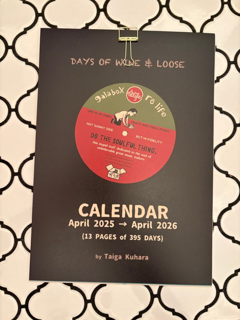 今年も頼んだ大河製カレンダー。来年の4月まで使えないのが、ミソです。