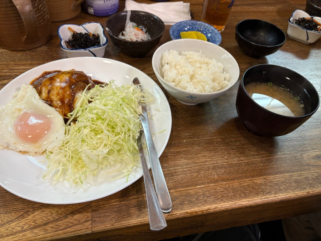 本日は、ハンバーグ!デミグラスソースが抜群に美味しい!何気に味噌汁の出汁も美味い!