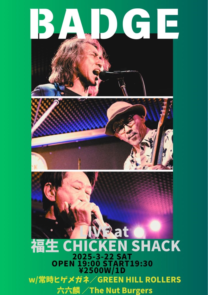 そして今週末の告知です。今週末3.22はCHICKEN SHACKにて。BADGEフロント3人で演ります。ぜひ、遊びに来てください。よろしくお願いします!