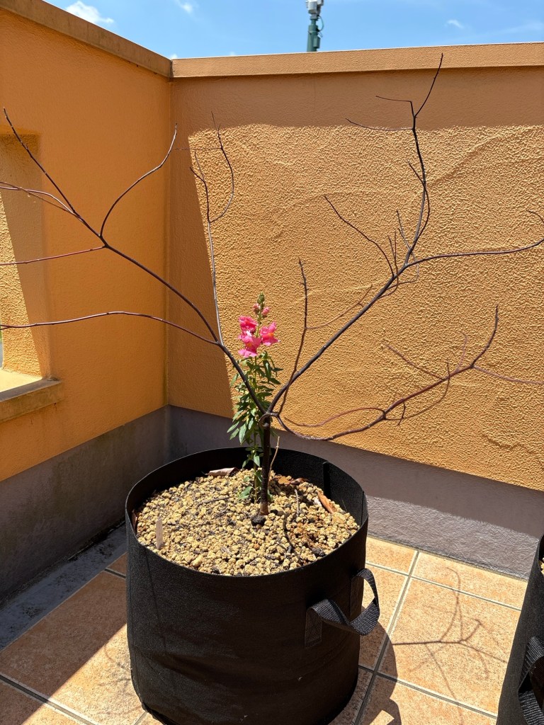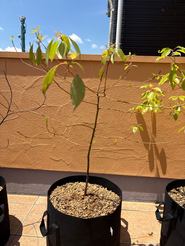 まず1本目。植え替え時に土が根から落ちてしまった子。その後葉が全て枯れてしまったので、落とした。幹は赤く、成長休止状態。まだ生きてはいる。