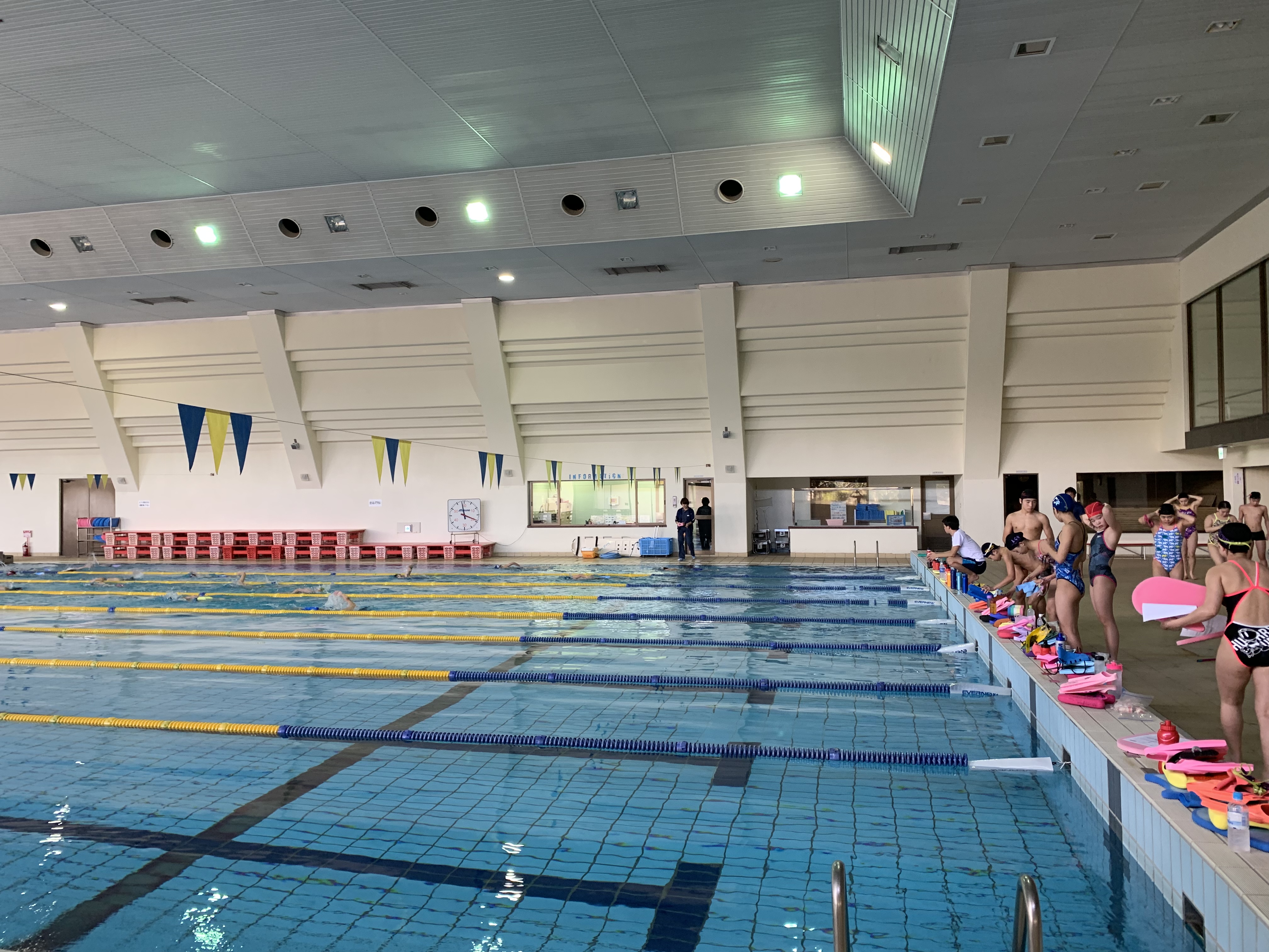 年始合宿も2日目に突入。おなじみ下田市にある敷根公園プールです。 普段、1日1回練習のなので、ただ1日2回になるだけで、もうシンドイのですが、みんなよく取り組んでいます。