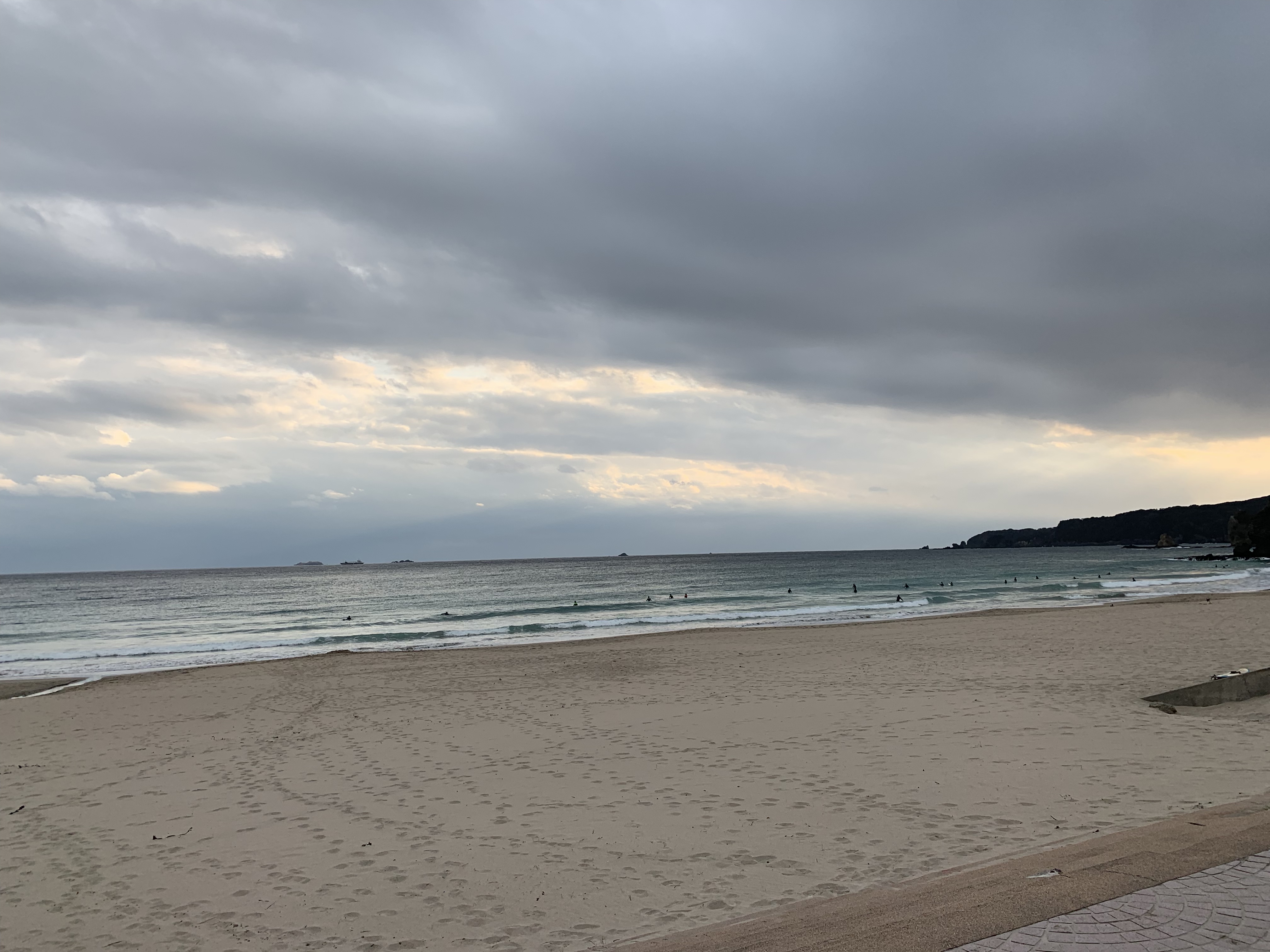 んで、選手たちと別れて海へ。お正月の波乗りも今日でおしまい。波はすごく小さく、寒かったのですが、あんまり名残惜しいので、1ラウンド。